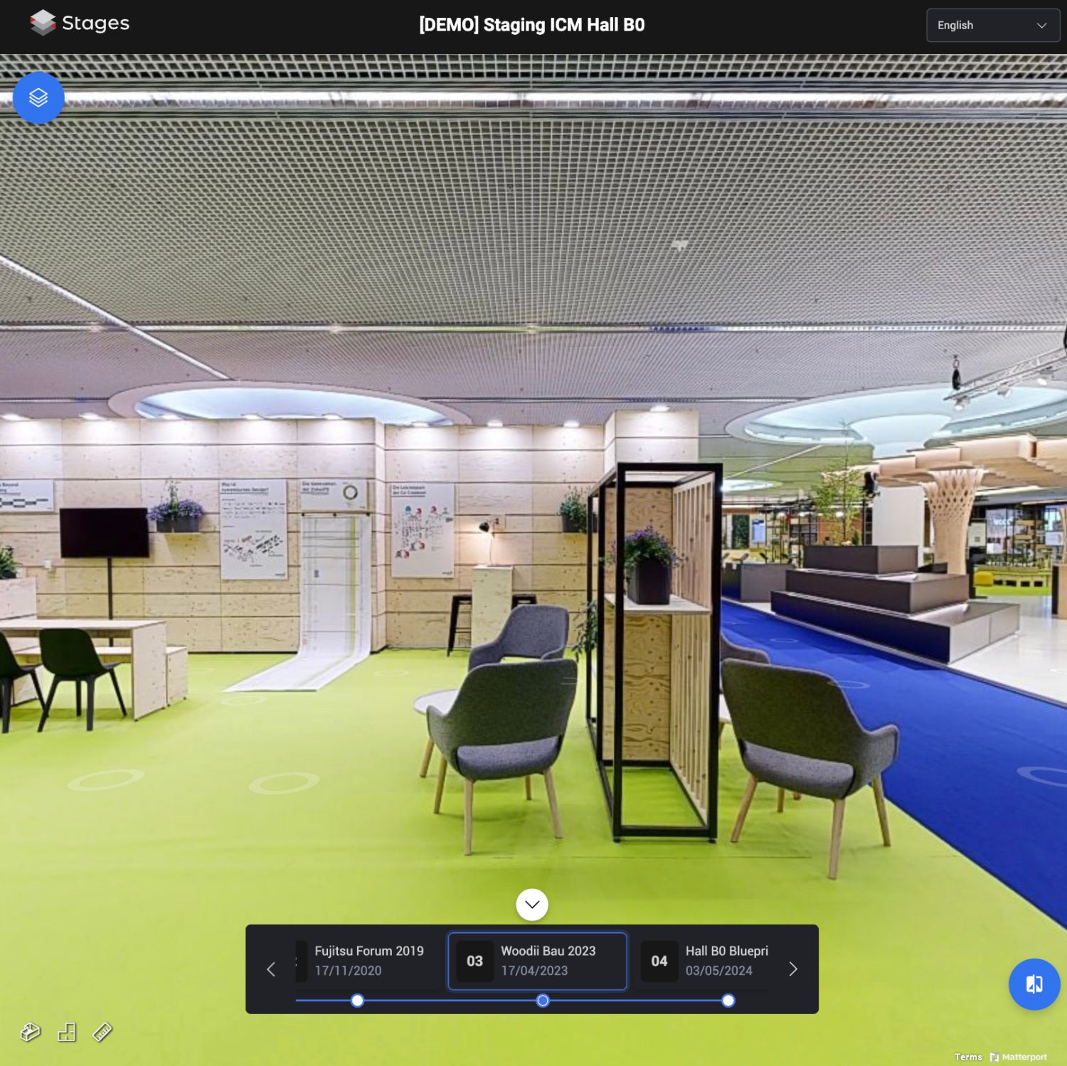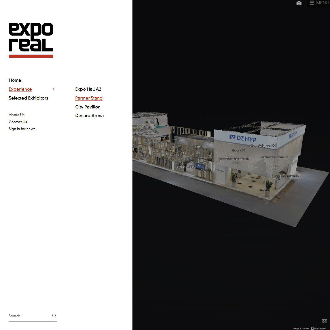 For the Expo Real Asia Pacific project, we created Matterport Tours to document and present the concept to exhibitors, partners, and stakeholders. These tours are seamlessly integrated into an innovative website concept.